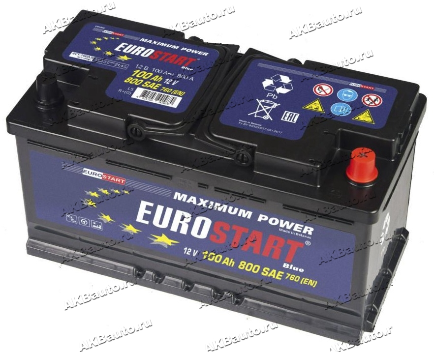 Аккумулятор автомобильный Eurostart Blue 100 А/ч 760 А обр. пол. Евро авто (353х175х190) EB1000