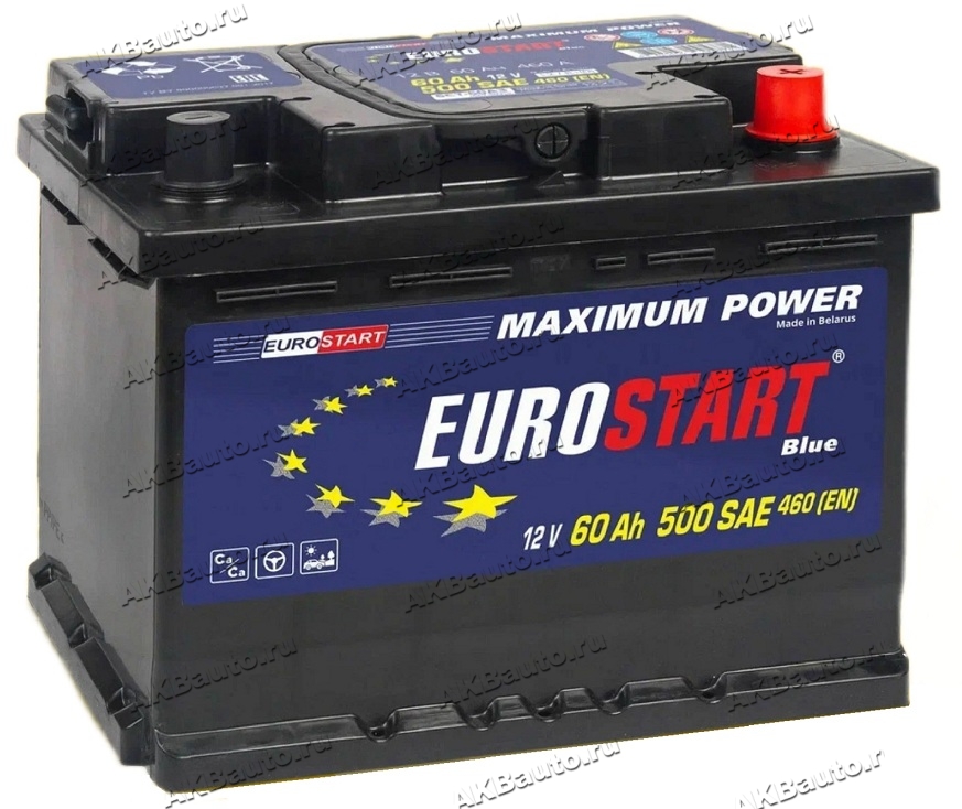 Аккумулятор автомобильный Eurostart Blue 60 А/ч 460 А обр. пол. Евро авто (242х175х190) EB600 2024
