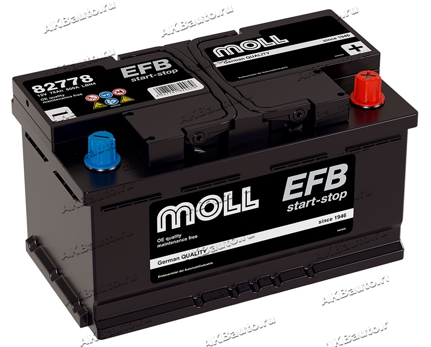 Аккумулятор автомобильный Moll EFB 78 А/ч 800 А обр. пол. низкий Евро авто (315x175x175) 82778 LB4.0 LN4