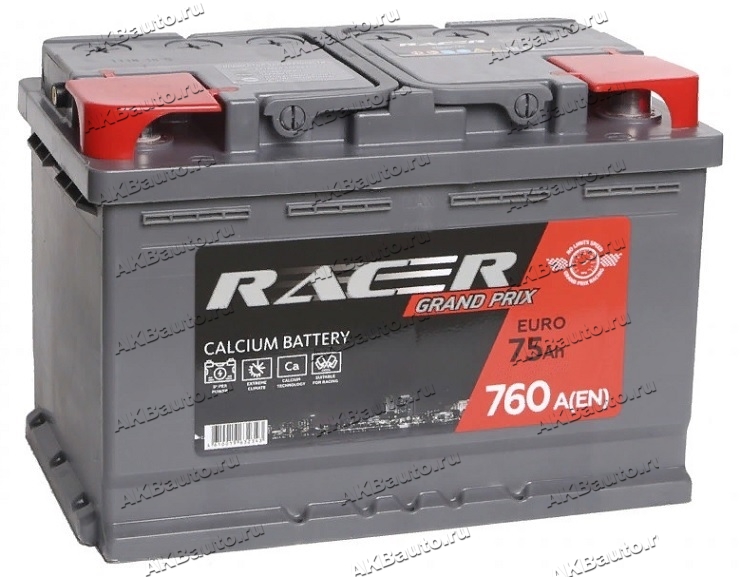 Аккумулятор автомобильный Racer 75 А/ч 760 А обр. пол. низкий Евро авто (278х175х175) 2024