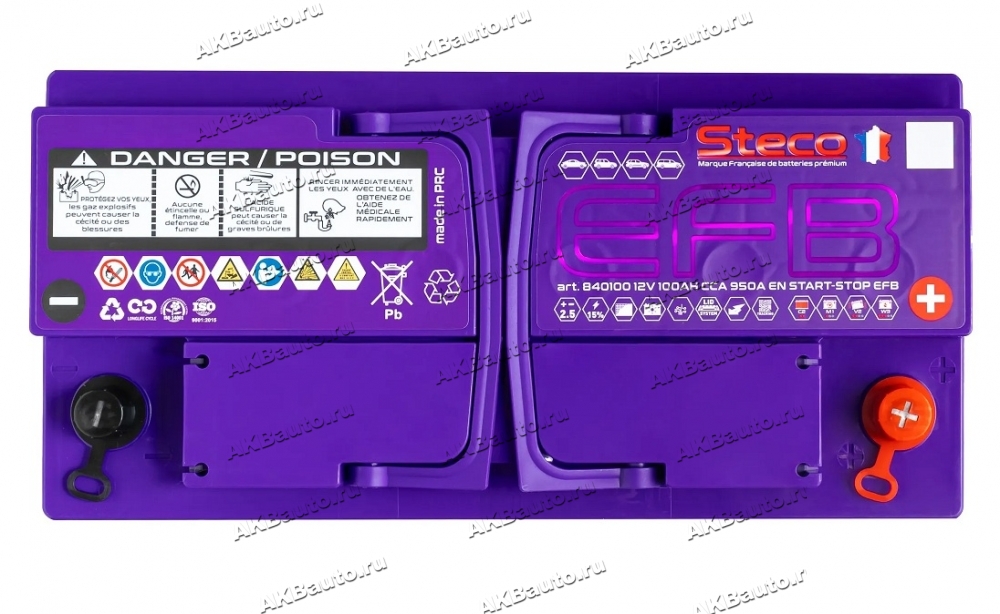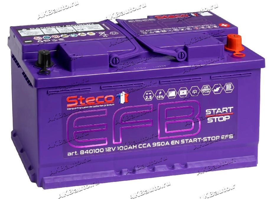 Аккумулятор автомобильный Steco EFB 100 А/ч 950 А обр. пол. Евро авто (353x175x190) 840100