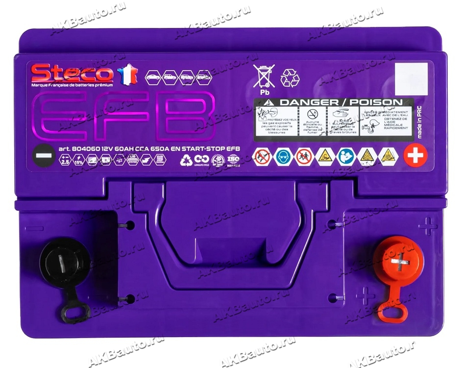 Аккумулятор автомобильный Steco EFB 60 А/ч 650 А обр. пол. Евро авто (242x175x190) 804060
