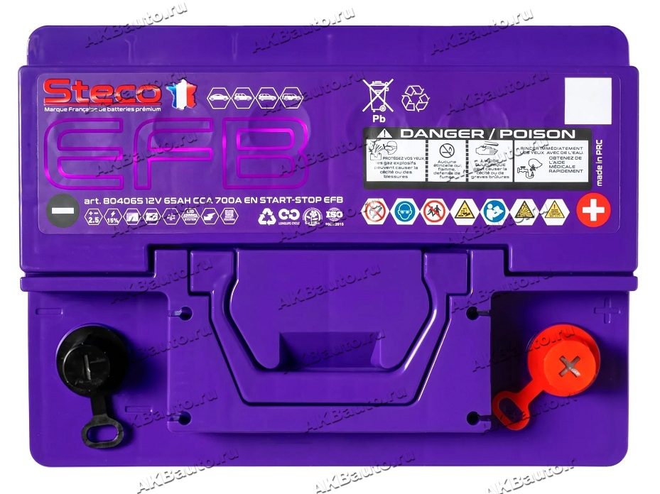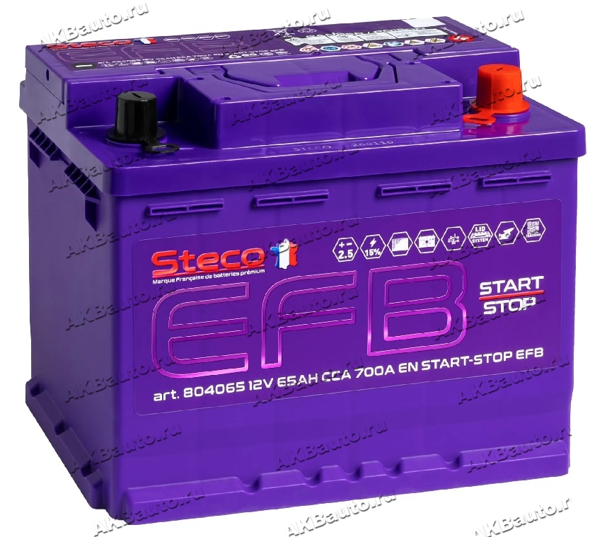 Аккумулятор автомобильный Steco EFB 65 А/ч 700 А обр. пол. Евро авто (242x175x190) 804065