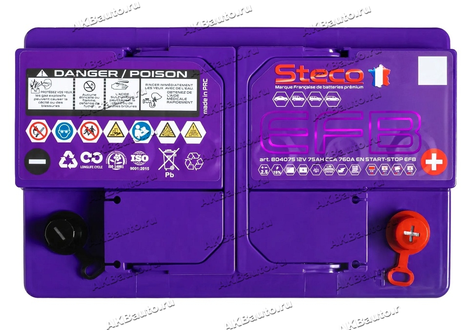 Аккумулятор автомобильный Steco EFB 75 А/ч 760 А обр. пол. Евро авто (278x175x190) 804075