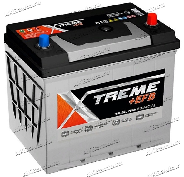 -27% Аккумулятор автомобильный Xtreme EFB 95D23L 75 А/ч 690 А обр. пол. Азия авто (230x172x220) с бортиком 2023 купить в Москве по цене 7900 рублей - АКБАВТО