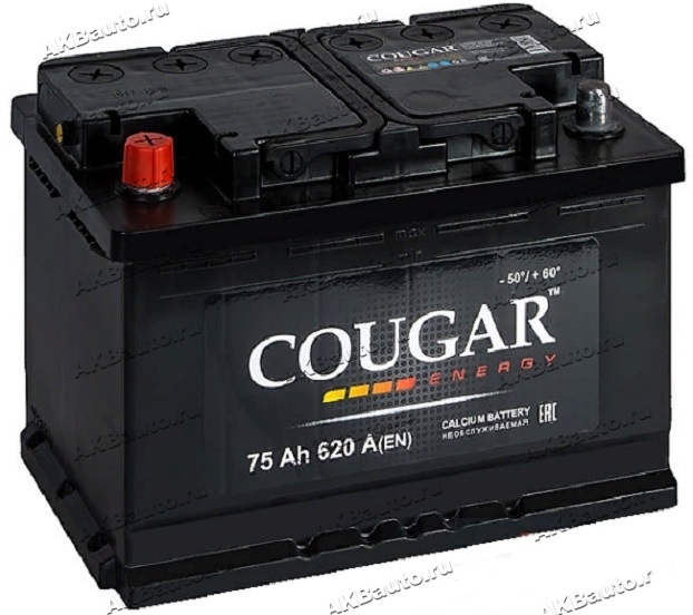 -17% Аккумулятор автомобильный Cougar Energy 75 А/ч 620 A прям. пол. Росс. авто (278x175x190) 2024 купить в Москве по цене 6300 рублей - АКБАВТО