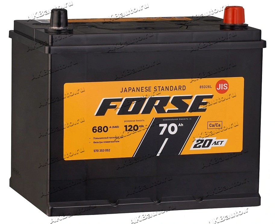 Аккумулятор автомобильный FORSE Asia 85D26L 70 А/ч 680 А обр. пол. Азия авто (260x173x225) с бортиком купить в Москве по цене 10303 рубля - АКБАВТО