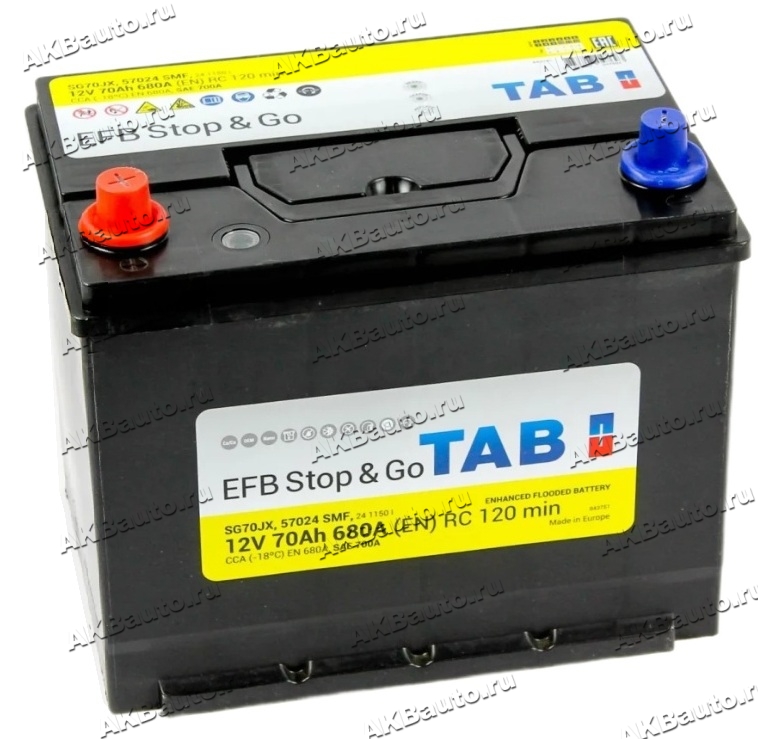 Аккумулятор автомобильный TAB EFB Stop&Go Asia 70 А/ч 680 А прям. пол. Азия авто (259х173х225) 57024 с бортиком