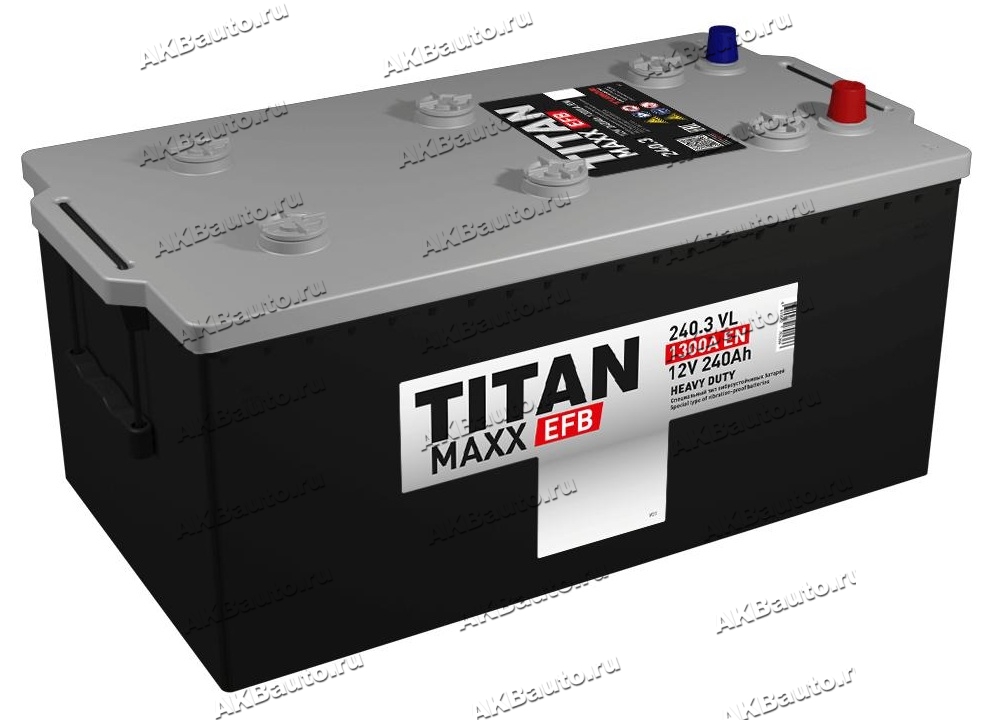 TITAN MAXX EFB 240 А/ч 6CT-240.3VL - автомобильные аккумуляторы, выпускаемые в России на заводе Tubor (Нижегородская область). Изготавливаются по кальциевой технологии. На крышке батареи открыт доступ к банкам (для отслеживания уровня электролита и замера его плотности), хотя при оптимальных условиях эксплуатации долив не требуется. АКБ поставляются залитыми, заряженными, сразу готовыми к эксплуатации.