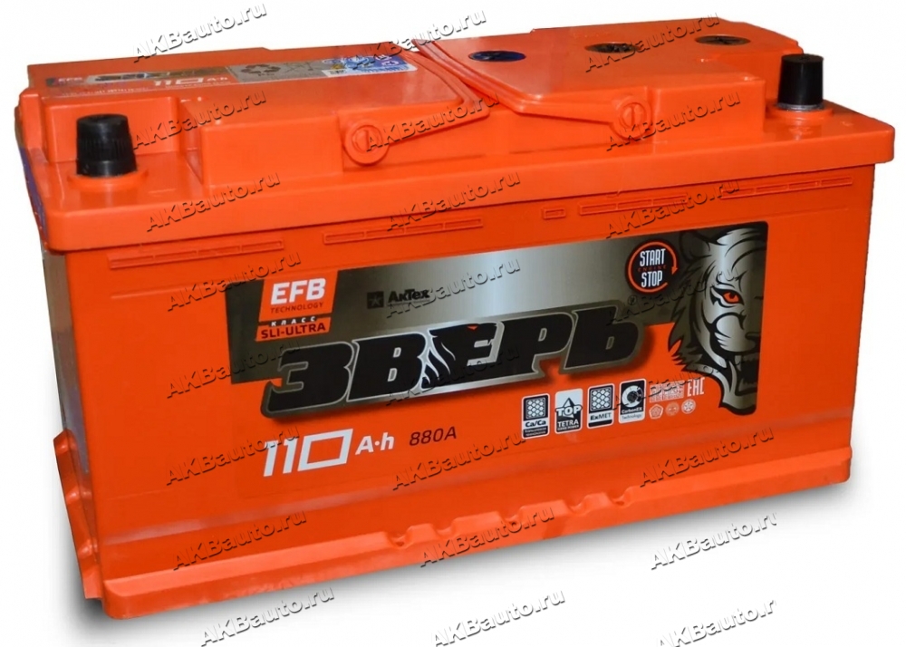 Аккумулятор автомобильный Зверь EFB 110 А/ч 880 А обр. пол. Евро авто (353x175x190)