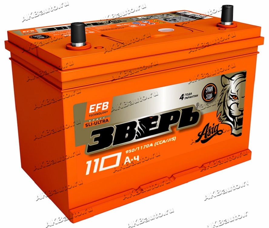 Аккумулятор автомобильный Зверь EFB Asia 110 А/ч 950 А обр. пол. 125D31L Азия авто (305x175x221) ZVEFBA 110-3-R с бортиком